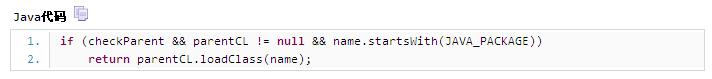 判断的条件为:parent classloader不为null、不从parent classloader中加载、Equinox的向后兼容属性(osgi.compatibility.bootdelegation)为true以及 jvm的bug class,如满足以上条件,则尝试从parent classloader中加载。