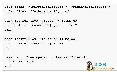即便我们没有学过Capistrano的语法,从上面的文件中我们也可以大体了解这些操作做了什么。上面的文件并不是什么简化的说明文档,而是实实在在可以运行的代码。