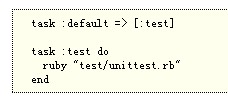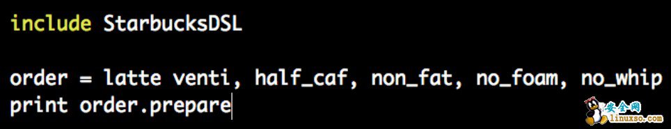 从上面的例子上,我们大体可以看出定义函数和DSL之间的风格的差别了。相比较而言,DSL的风格更面向客户,语法也更加友好。有人会问:“我为什么要用DSL?DSL都是给不懂编程的人用的。” 非也。DSL说到底是为了更加快速的描述问题,解决问题的。像Capistrano(一种网络应用的部署解决方案)用DSL来定义部署操作: