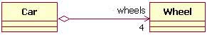 带菱形的箭头表示基本聚合, 由上图知道, Wheel类扮演wheels角色, 聚合4个到Car对象里面去,