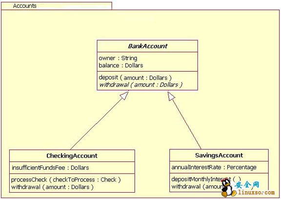 水平的连线还是表示上面所说的关联, 但从关联连线中引伸出来的虚线, 这意味当Flight类的一个实例关联到 FrequentFlyer 类的一个实例时,将会产生 MileageCredit 类的一个实例