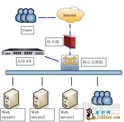 然而在最近的一次调测中,就是这样简单的旁挂部署,却也出现了意想不到的情况。客户的业务结构很简单,3台WEB 服务器(IIS)实现负载均衡。