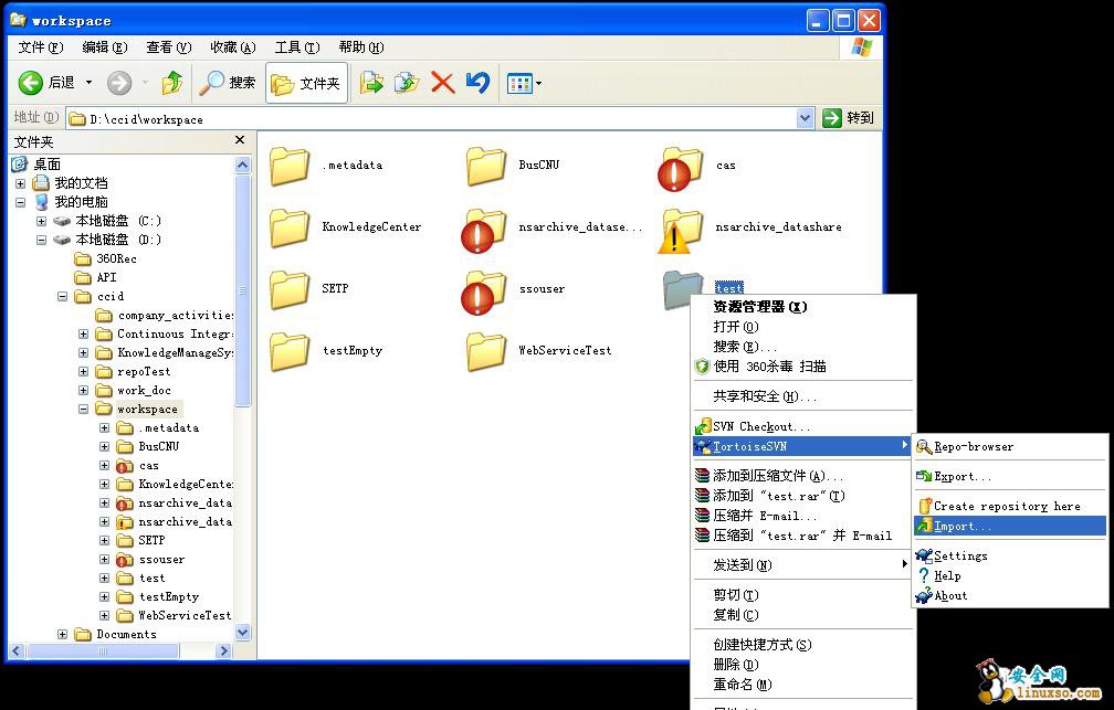 现在我们将我们的这个test工程上传到svn服务器上面去。