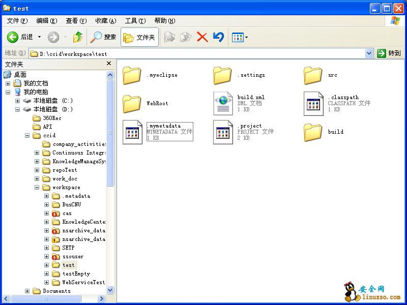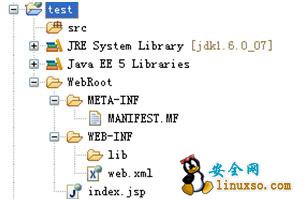 我使用MyEclipse 构建一个工程名为test。其结构如下图: