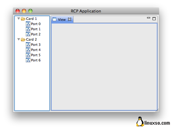 Eclipse RCP中每个ViewPart表示一个可插拔的视图,而Perspective类的作用是对View作布局,这里我们创建两个view:NavigationView,View,左边导航树(借用了RCP自带的mail模版),右边主面板用来嵌入Swing组件,初步为如下效果: