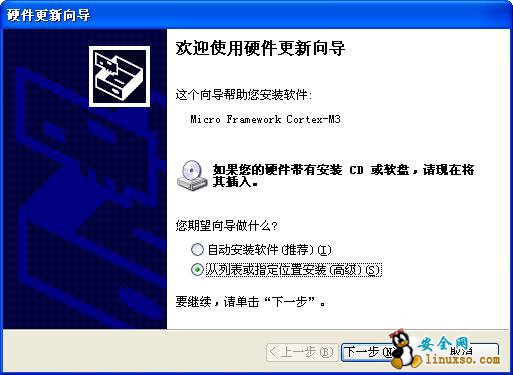 (2)、选择从指定位置安装,选择所下载的USB驱动位置即可;