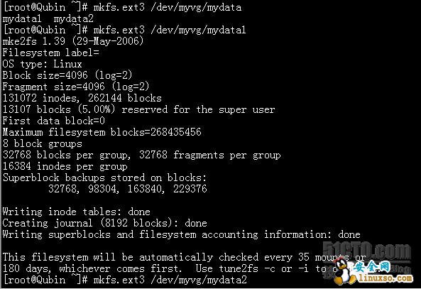 好了,拓扑完成了。下面我们可以通过]#mkfs.ext3.html' target='_blank'>mkfs.ext3 /dev/myvg/mydata1对其创建文件系统,就是格式化。