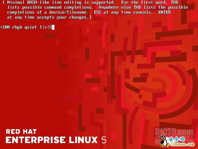 我们将光标移动到 kernel 这一行后 再次按e键 然后 在quiet 后面输入1 或者s或者S都行 然后回车,意思是启动1级别的Linux,1级别的Linux是管理员维护服务器用的级别,进入后不需要输入密码。