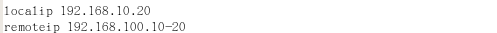 设置地址池为192.168.100.10——192.168.100.20,localip为本机IP,remoteip为地址池,不建议设为同一网段