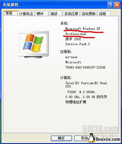 有人说XP系统必须是专业版的才行,就是在桌面我的电脑上右键属性,显示系统为:Microsoft Windows XP Profrssinal,而不能是:Microsoft Windows XP Home Editor。如下图: