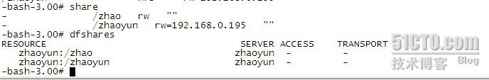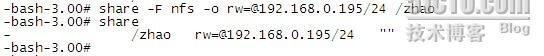 -bash-3.00# share -F nfs -o rw=@192.168.0.195/24 /zhao 可以是一个IP地址也可以是一个网段