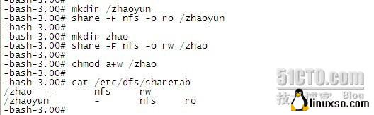 -bash-3.00# share -F nfs -o ro /zhaoyun