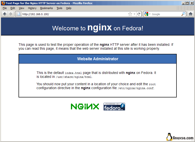 然后查看Nginx是否工作,浏览器输入IP,如图: