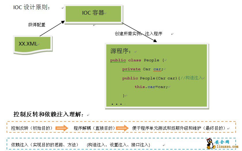 此时我们还无法回答这个问题,可是当我们考虑到配置文件时,我们就豁然开朗了,不管是哪种注入方法,目的都是给我们的程序传入一个实例变量。而这个实例变量我们可以事先在配置文件中配置,当程序运行时就可以读取配置文件,通过反射机制来创建所需的对象了,如果此时我们的需求发生了变化,我们也只需改一下配置文件就ok了。这里有些人可能会认为这也修改了文件呀,为什么修改配置文件就可以了呢。呵呵,其实配置文件是不需要编译的,我们可以随时修改配置文件,而不需要通过更改一行源代码的方法就实现了程序流程的控制。这就是ICO的妙处哦~