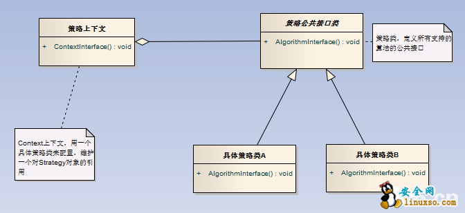 策略模式上下文实际上是一个工厂类,供客户端调用,这样就将客户端调用时的条件语句转移到上下文类中,如果使用了Java的反射机制,则可将上下文类中的条件语句简化,是上下文对象更加灵活,这一点的应用在Spring中可以看到。