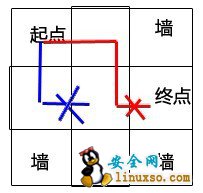 //x !=ex && y != ey 说明必须至少再转一次弯,但是已经不能再转了