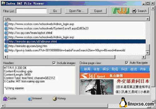 前面说过,即使在IE 中执行了相关清理操作,index.dat文件中同样会保留着相关的网址信息,那么,如何通过这个文件来了解曾经造访过的网站呢?