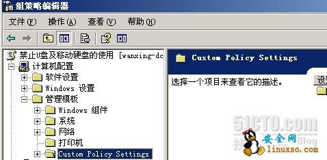 6)在左侧的控制台树中看到:计算机配置→管理模板 下多出了“Custom Policy Settings”项