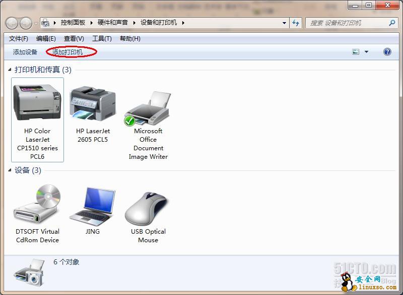 2. 从“开始”菜单中打开“设备和打印机”单击“添加打印机”;选择“添加网络、无线或Bluetooth打印机(W)”;