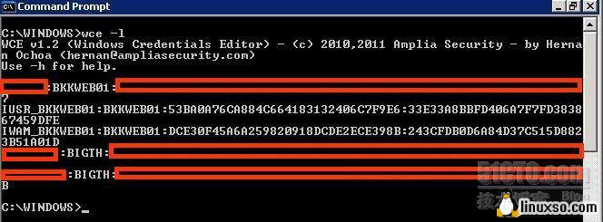 这里说明一下,图中每个用户名:号和HASH:号之间的就是域或计算机名,图里的域名称是:BIGTH。计算机名是:BKKWEB01,显示的就是此台计算机名