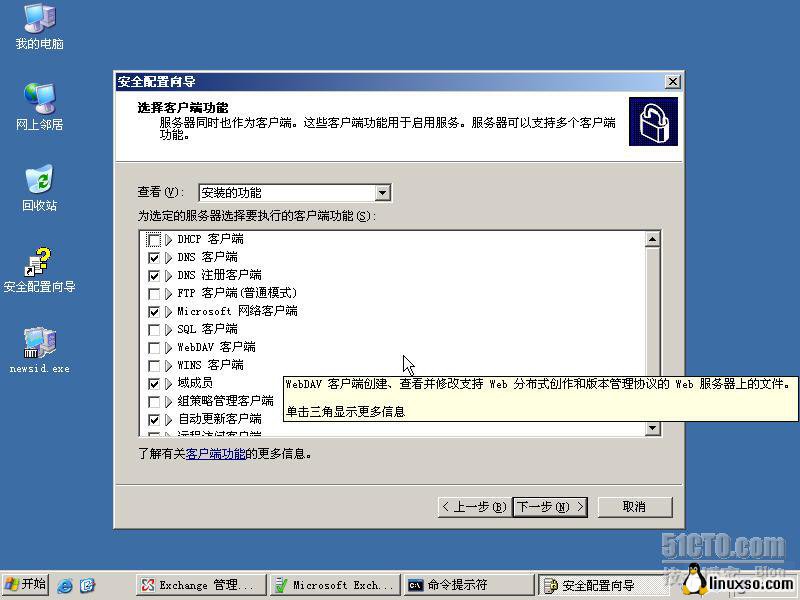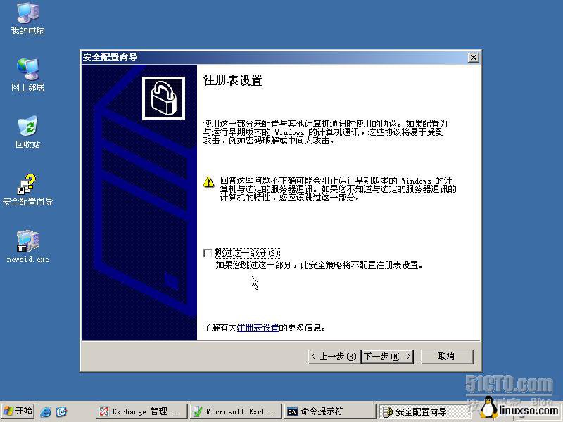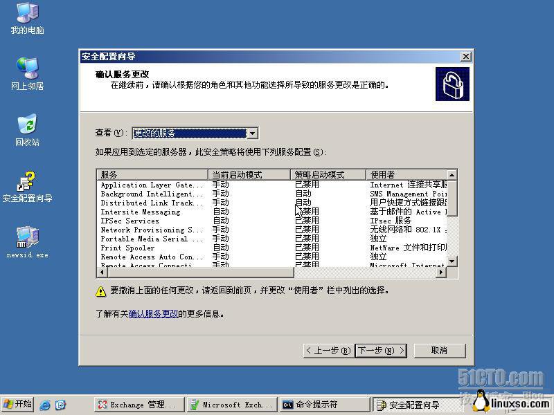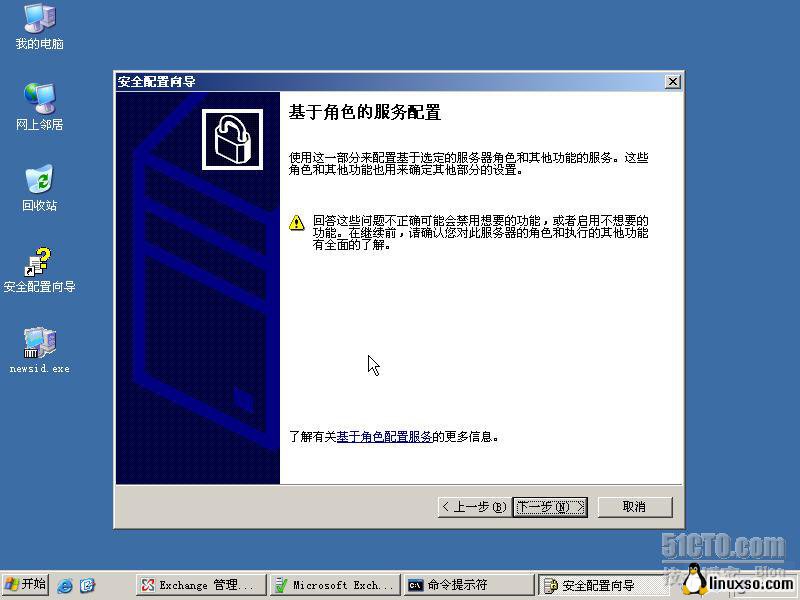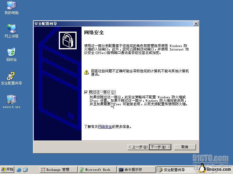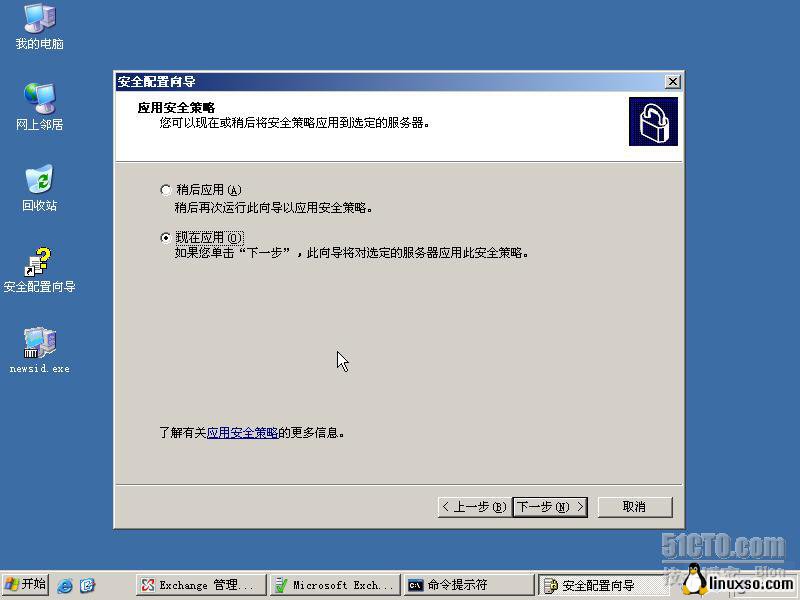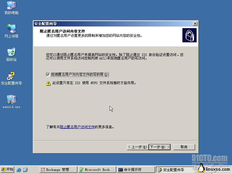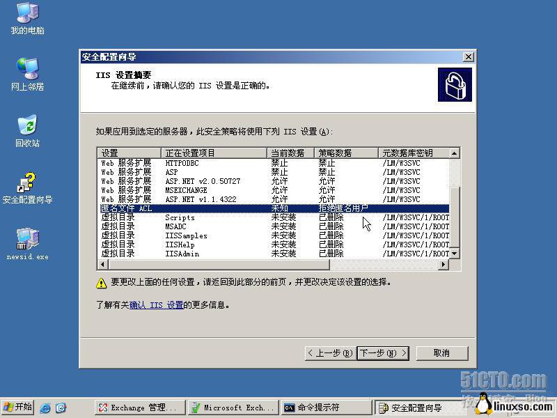 接下来使用系统自带的安全配置向导进行Exchange Server安全加固。因安全设置项目较多,而且基本上都是按照默认的安全策略来操作,我这里就简单的以图片说话了。