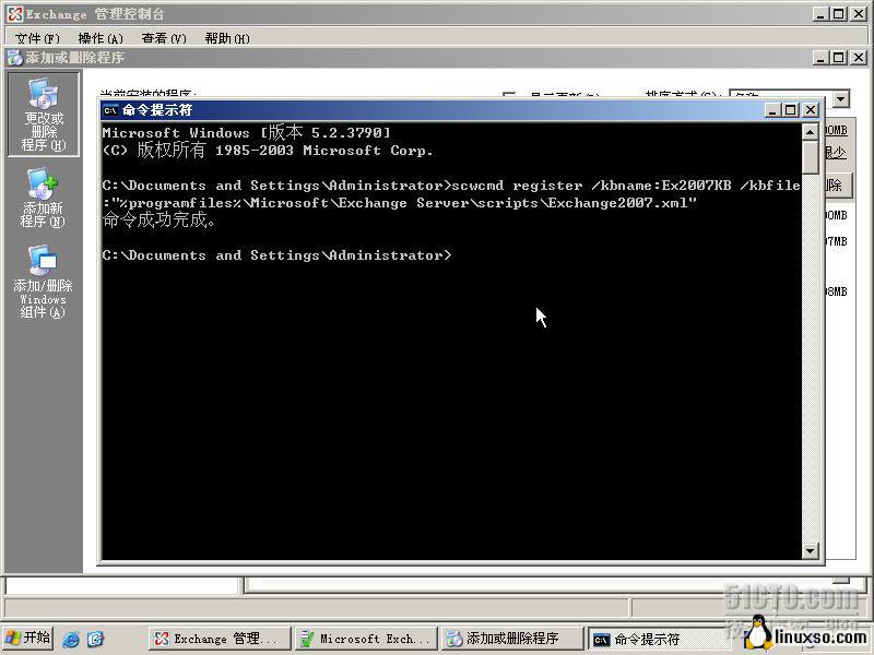 2.注册Exchange Server角色SCW扩展。安装安全配置向导之后,打开CMD,在