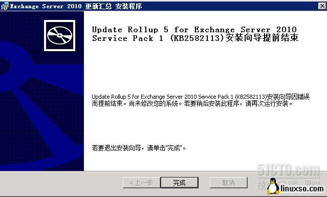 为解决Outlook客户端回执错误问题,安装Exchange2010汇总更新5,安装失败: