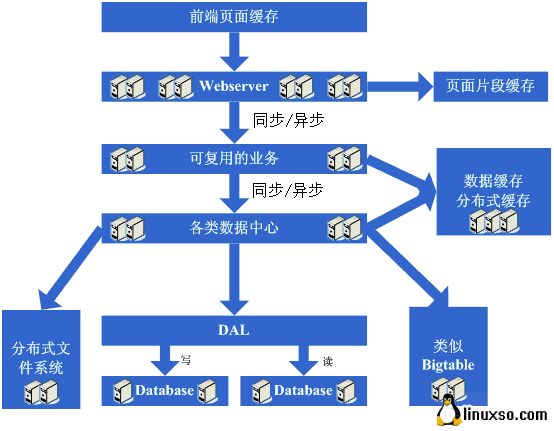 经过这一步,差不多系统的架构进入相对稳定的阶段,同时也能开始采用大量的廉价机器来支撑着巨大的访问量和数据量,结合这套架构以及这么多次演变过程吸取的经验来采用其他各种各样的方法来支撑着越来越高的访问量。