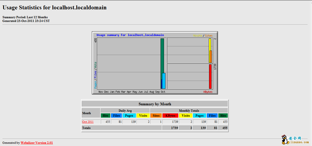 最后在IE输入http://192.168.1.193/protect/webalizer/ 即可看到图形化的界面了