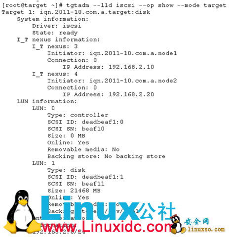 可以看到两个节点都成功接入target server,接下来开始做群集文件系统