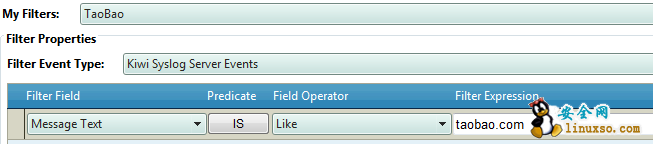 当然,我们这里主要使用他的过滤器功能对我们的日志事件进行分析,我这里设置了一个以淘宝为例的过滤器: