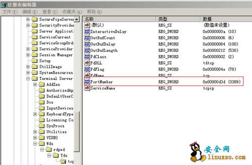 右边键值中 PortNumber 改为你想用的端口号.注意使用十进制(例 10000 )