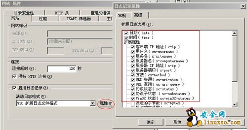 5.6、建议使用W3C扩充日志文件格式,每天记录客户IP地址,用户名,服务器端口,方法,URI字根,HTTP状态,用户代理,而且每天均要审查日志。(最好不要使用缺省的目录,建议更换一个记日志的路径,同时设置日志的访问权限,只允许管理员和system为Full Control)。