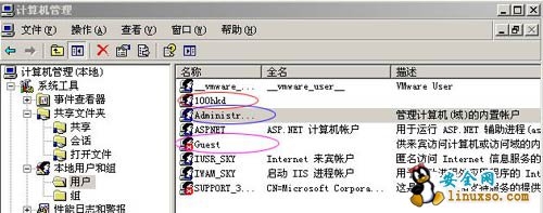 去掉所有的Duplicate User用户、测试用户、共享用户等等。用户组策略设置相应权限,并且经常检查系统的用户,删除已经不再使用的用户。这些用户很多时候都是黑客们入侵系统的突破口。