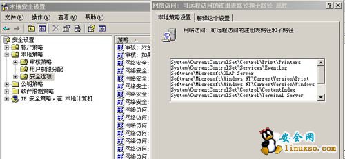 网络访问:可远程访问的注册表路径全部删除