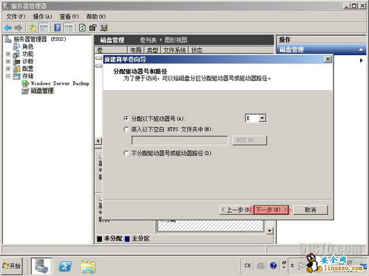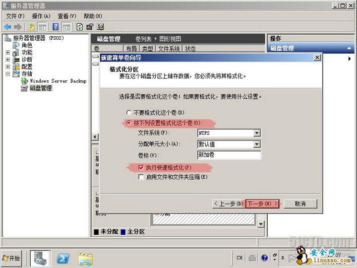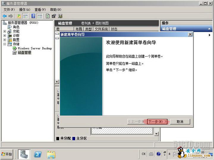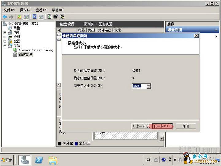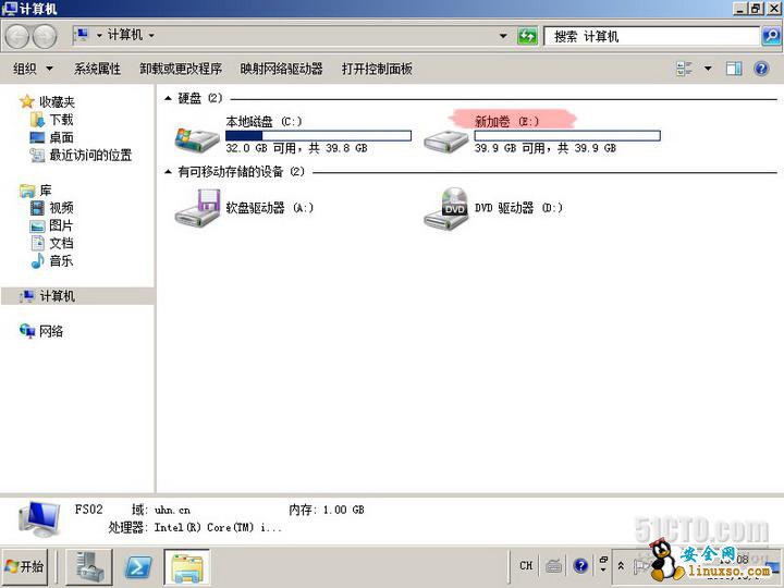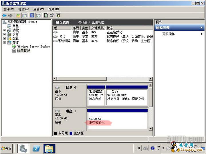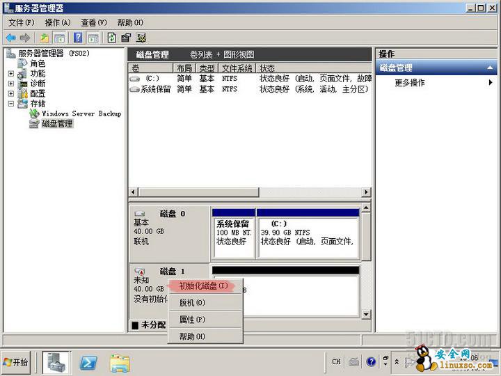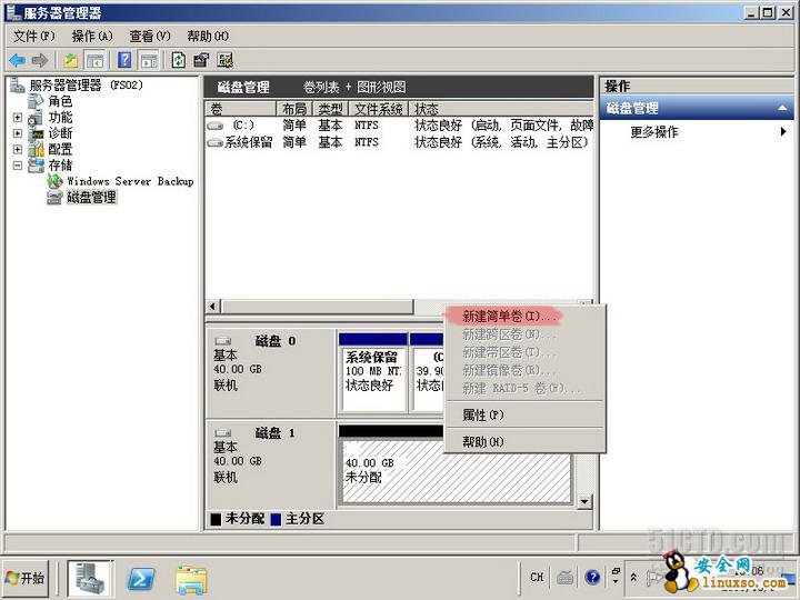 实验目标:为文件服务器FS01添加一块40G的硬盘,并分区格式化。