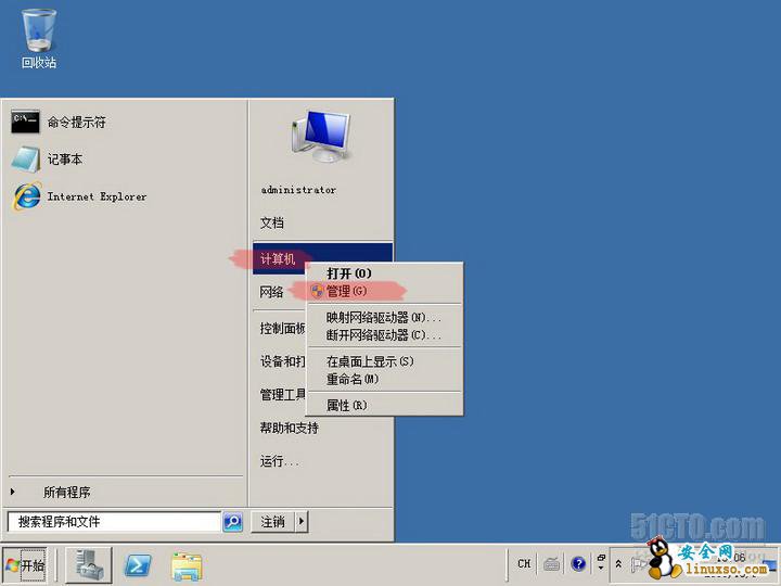 11、点击“开始”,在计算机上右键选择“管理”